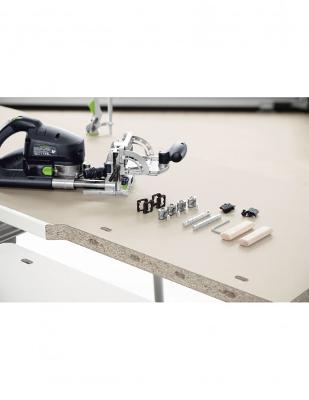 - System łączników kątowych i prostych do frezarki do łączników DOMINO XL DF 700 umożliwia stabilne, rozłączne połączenia przy grubości materiału od 30 mm