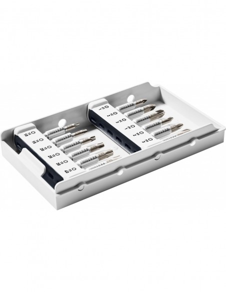 bit PH 1, bit PH 2, bit PH 3, bit PZ 1, bit PZ 2, bit PZ 3, bit TX 10, bit TX 15, bit TX 20, bit TX 25, bit TX 30, bit TX 40, w opakowaniu SB do zawieszenia na ściance dziurkowanej