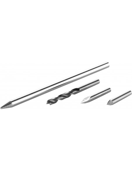 - zestaw części zamiennych ze stożkową końcówką centrującą, ekstra długą stożkową końcówką centrującą, stożkowym wiertłem centrującym (4 mm) i wybijakiem do zestawu FB D 15-35 CE (nr art. 205749)