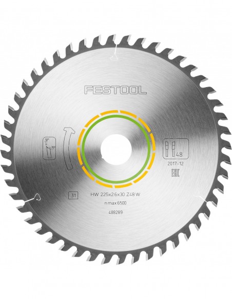 - Dzięki oznaczeniu kolorystycznemu Festool można szybko znaleźć właściwą tarczę pilarską: kolor żółty oznacza obróbkę drewna