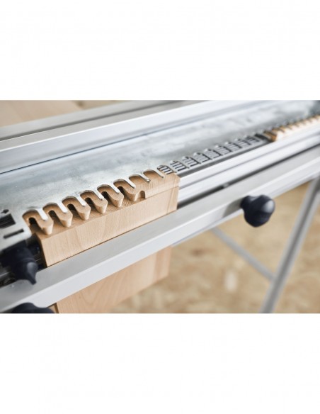 • Dzięki dopasowanemu systemowi składającemu się z frezarki górnowrzecionowej, szablonu i frezu można błyskawicznie wykonywać tradycyjne otwarte i zamknięte wczepy na „jaskółczy ogon”