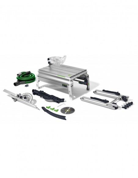 tarcza pilarska WOOD UNIVERSAL HW 190x2,6 FF W32, przykładnica kątowa, nóżki składane, 3 x zabezpieczenie przeciwodpryskowe, zestaw do odsysania, popychacz, schowek na wyposażenie, wspornik z rolkami transportowymi, klucz imbusowy SW 6