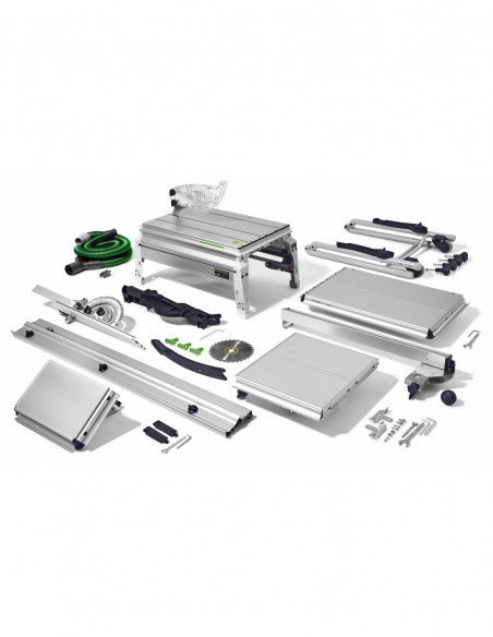 tarcza pilarska WOOD UNIVERSAL HW 190x2,6 FF W32, przykładnica kątowa, prowadnica wzdłużna, stół przesuwny, element przedłużający stół, element rozszerzający stół, nóżki składane, 3 x zabezpieczenie przeciwodpryskowe, zestaw do odsysania, popychacz, schowek na wyposażenie, wspornik z rolkami transportowymi, klucz imbusowy SW 6