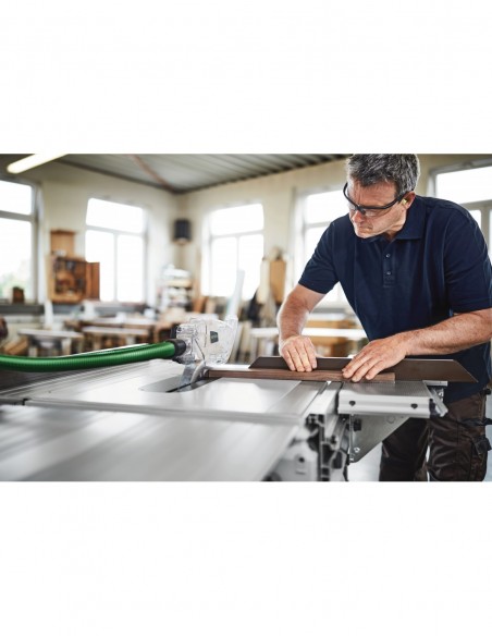 - Stół przesuwny z rolkami z tworzywa sztucznego dla wygodnego prowadzenia elementu obrabianego przy cięciach poprzecznych do 820 mm