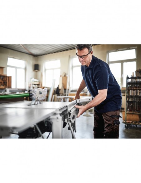 - Elastyczność: wysokość cięcia 80 mm, możliwość powiększenia powierzchni roboczej, przykładnica liniowa i kątowa umożliwiają elastyczną pracę, nawet w przypadku dużych elementów obrabianych