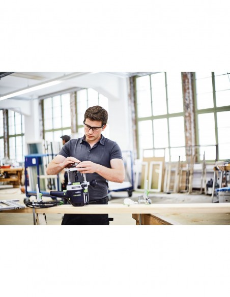 - Skuteczność odsysania do 99 % z łapaczem wiórów i osłoną przy frezowaniu krawędzi