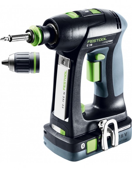 2 x akumulator BP 18 Li 4,0 HPC-ASI, szybka ładowarka TCL 6, uchwyt narzędziowy WH-CE CENTROTEC, magnetyczny uchwyt bitów CENTROTEC BH 60 CE-Imp, szybkomocujący uchwyt wiertarski FastFix 13 mm KC 13-1/2-K-FFP, bit PZ 2, zaczep na pasek, Systainer SYS3 M 187