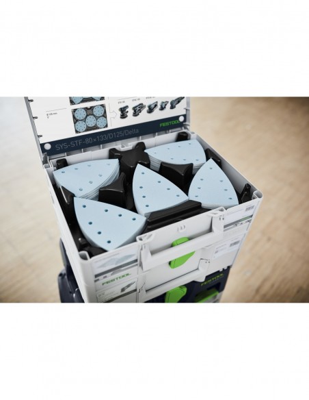 - Do tego Systainera pasują 3 różne formaty materiałów ściernych