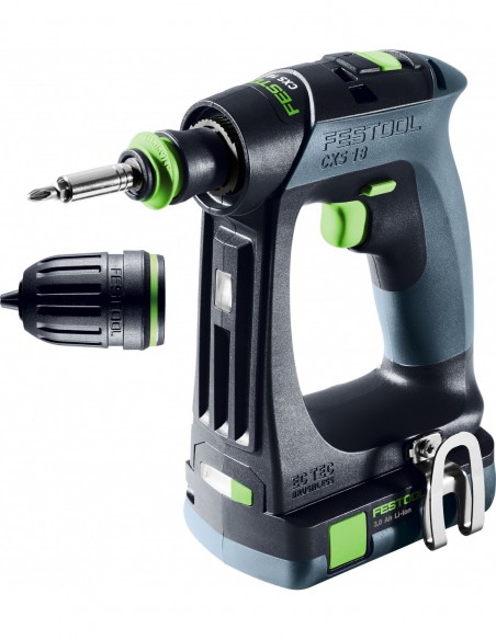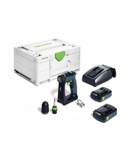 2 x akumulator BP 18 Li 3,0 C, szybka ładowarka TCL 6, magnetyczny uchwyt bitów CENTROTEC BH 60 CE-Imp, uchwyt narzędziowy WH-CE CENTROTEC, szybkomocujący uchwyt wiertarski FastFix 10 mm, bit PZ 2, zaczep na pasek, Systainer SYS3 M 187