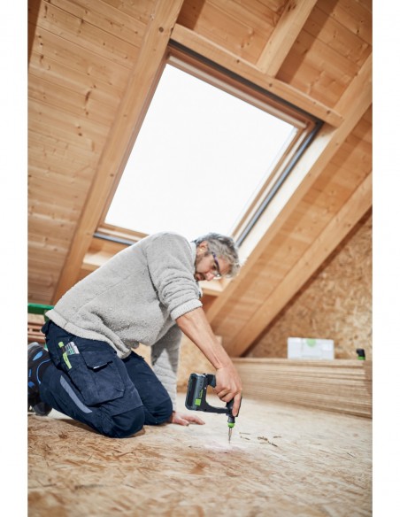 - Optymalne oświetlenie obszaru roboczego przez dodatkowe lampy LED (w połączeniu z akumulatorem Bluetooth® i z możliwością sterowania przez aplikację Festool Work)