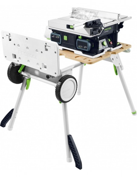 tarcza pilarska WOOD FINE CUT HW 168x1,8x20 WD42, prowadnica równoległa, popychacz, przykładnica kątowa, worek na wióry, klin rozdzielnik do ukrytych cięć, klin rozdzielnik z osłoną, klucz imbusowy SW 6, zestaw zasilający SYS 18V 2x5,0/TCL 6 DUO, moduł transportowy UG-CSC-SYS