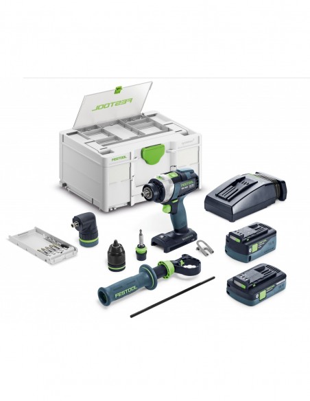 - Elastyczny system akumulatorów: w zastosowaniach wymagających wysokiej mocy akumulator Li-HighPower Compact 4,0 Ah zapewnia idealne połączenie mocy, kompaktowości i lekkości. Przy pracach polegających na wierceniu i wkręcaniu wymagających większej mocy dobrym wyborem będzie akumulator 5,0 Ah. Pełne zabezpieczenie: kompleksowe usługi Festool obejmują oczywiście również akumulator