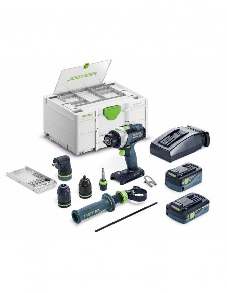 - Elastyczny system akumulatorów: w zastosowaniach wymagających wysokiej mocy akumulator Li-HighPower Compact 4,0 Ah zapewnia idealne połączenie mocy, kompaktowości i lekkości. Przy pracach polegających na wierceniu i wkręcaniu wymagających większej mocy dobrym wyborem będzie akumulator 5,0 Ah. Pełne zabezpieczenie: kompleksowe usługi Festool obejmują oczywiście również akumulator
