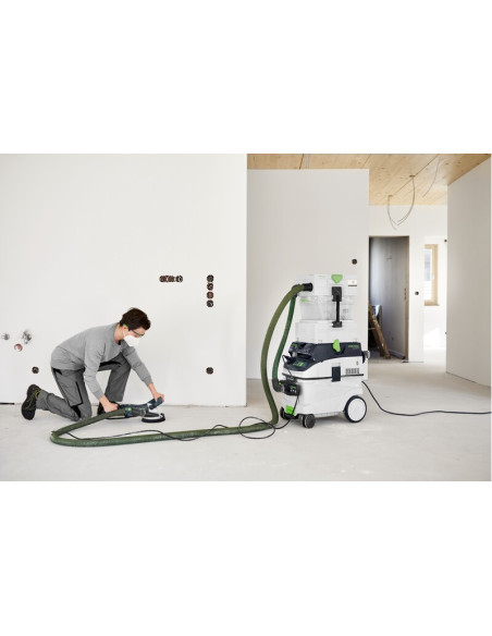 W przypadku bardzo dużych ilości pyłu, na przykład podczas pracy z użyciem frezarek do renowacji i szlifierek z osprzętem diamentowym, CTL 36 EI AC RENOFIX jest w swoim żywiole. Na tle poprzedniego modelu wyróżnia się większą efektywnością systemu oczyszczania filtra głównego AUTOCLEAN. Zapewnia to niezmiennie wysoką moc ssania, dłuższe okresy pracy i dłuższą żywotność filtra przy niższych nakładach na konserwację. Obsługa dotykowa umożliwia intuicyjne sterowanie odkurzaczem. Z zainstalowanym na stałe złączem Bluetooth® do automatycznego uruchamiania lub łączenia się z aplikacją Festool, za pomocą której można na przykład sterować interwałami oczyszczania. Gładki, antystatyczny wąż ssący można wygodnie przechowywać w zintegrowanym schowku na wąż.