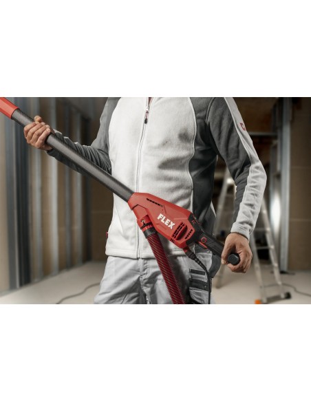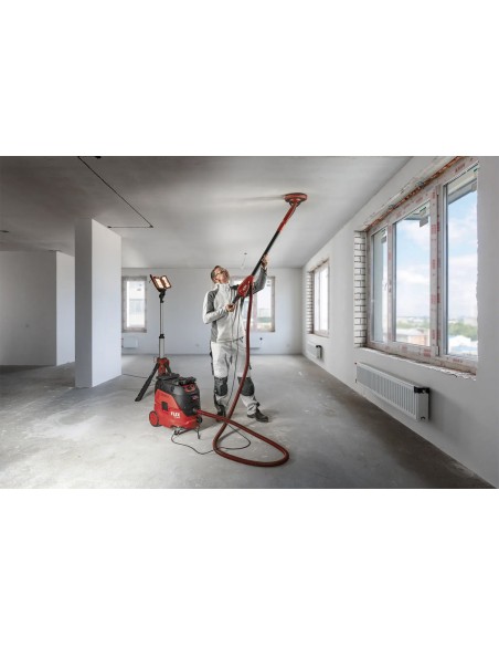 - Ta wyjątkowo lekka maszyna oferuje wyjątkowy komfort obsługi. Szlifierka do ścian i sufitów jest optymalnie wyważona, co umożliwia doskonałe prowadzenie, ponieważ ciężar jest równomiernie rozłożony na szlifierce. Ergonomicznie ukształtowana karbonowa rura prowadząca oraz miękkie uchwyty na rękojeści głównej i szpadlu sprawiają, że obsługa jest niezwykle wygodna.