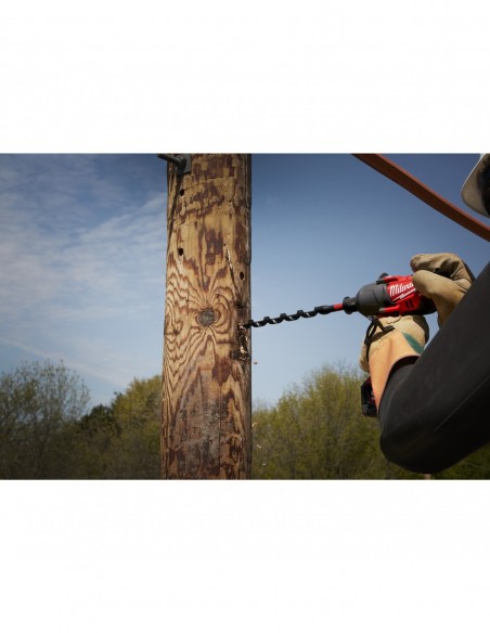 - Nowa geometria głowicy Milwaukee® Through-Center z główną krawędzią skrawającą jest wyosiowana ze środkiem śruby pociągowej.
