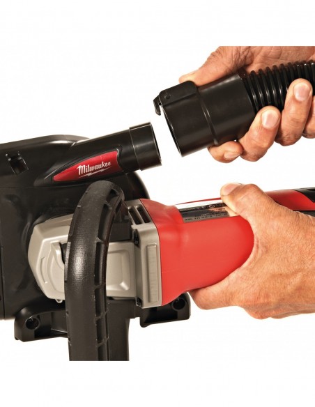 • Osłonę pyłową można łatwo podłączyć do odpylacza MILWAUKEE® klasy M za pomocą unikalnego adaptera w systemie „wystarczy kliknąć“ (tzw. click-system) dostarczanego z odpylaczem MILWAUKEE® EMAC