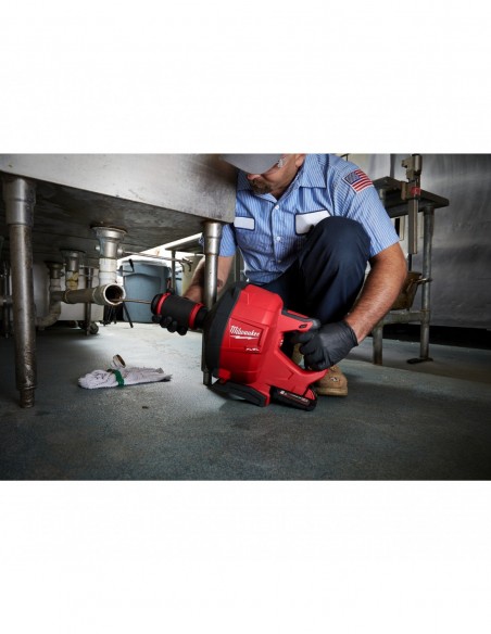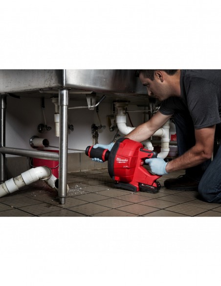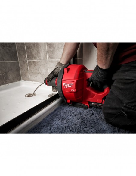 • Pierwsze na świecie ręczne urządzenie do przepyczhnia rur na akumulatorze 18 V z automatycznym podawaniem i wciąganiem, które może być używane ze spiralami 6 mm, 8 mm i 10 mm zarówno od MILWAUKEE®, jak i innych producentów, w rurach od 32 mm do 75 mm, do 15 m w głąb rury, eliminując wszystkie zagrożenia porażenia prądem, które są możliwe przy pracy z przewodowymi narzędziami