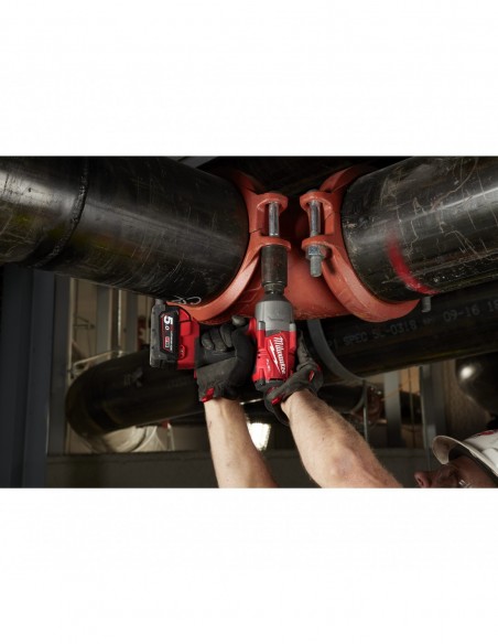 - Wysokoobrotowy klucz udarowy M18 FUEL™ zapewnia moment obrotowy 1017 Nm przy swoim kompaktowym rozmiarze 206 mm, co umożliwia pracę w miejscach trudno dostępnych