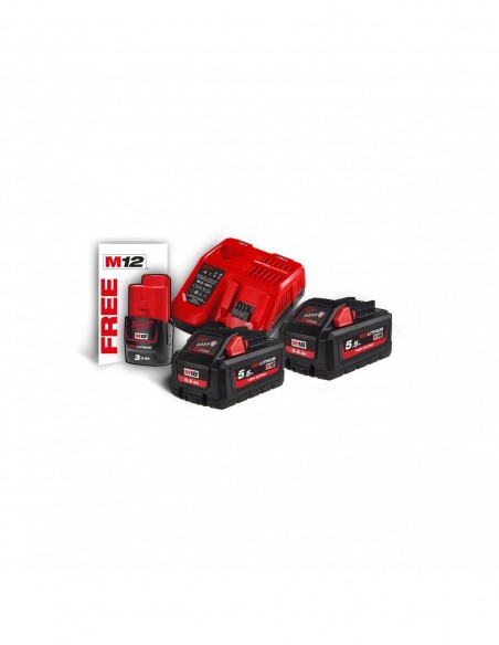 - 2 x M18 HB5.5/ 1 x M12 B3 Akumulatory/ M12-18 FC Ładowarka/ Bez walizki w zestawie