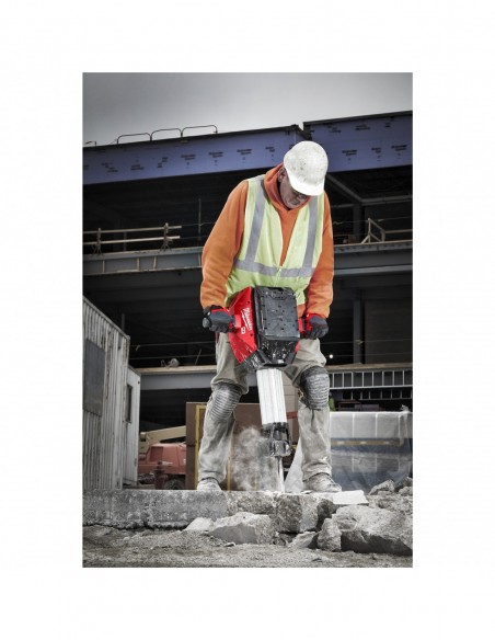 - Pierwszy na rynku bezprzewodowy młot wyburzeniowy z uchwytem narzędziowym HEX 28 mm zapewnia moc równą podobnym młotom z zasilaniem sieciowym, na sprężone powietrze lub zasilanych silnikiem spalinowym