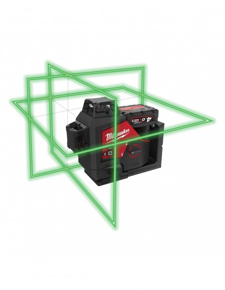- M12™ Laser 3-płaszczyznowy 360° z wiązką lasera w kolorze zielonym to kompleksowe rozwiązanie z jedną linią poziomą i dwiema pionowymi do szybkiego i łatwego poziomowania, wyrównywania, wyznaczenia prostopadłości i przenoszenia punktów. Pozwala na łatwe rozmieszczanie elementów na dużych przestrzeniach za pomocą jednego narzędzia.