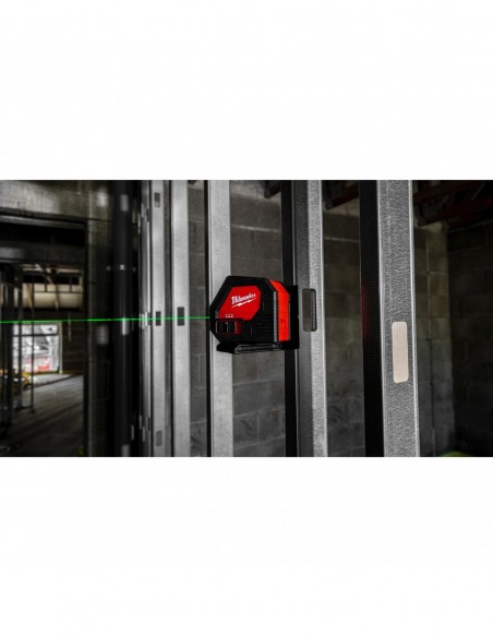 - Laser krzyżowy, zasilany bateriami alkaicznymi, zapewnia uniwersalną funkcjonalność z poziomowaniem i wyrównaniem w pionie