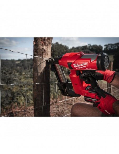 - Doskonała moc umożliwia dokładne wstrzeliwanie zszywek 50 mm w słupki ogrodzeniowe