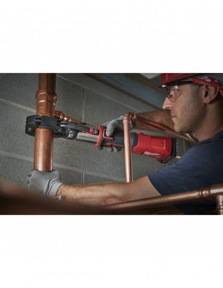 - Narzędzie obsługiwane jedną ręką umożliwia zaciskanie rur umieszczonych ponad głową użytkownika oraz pracę w wąskich przestrzeniach