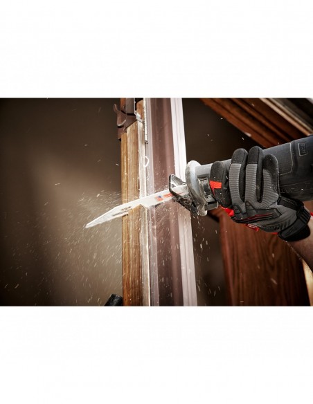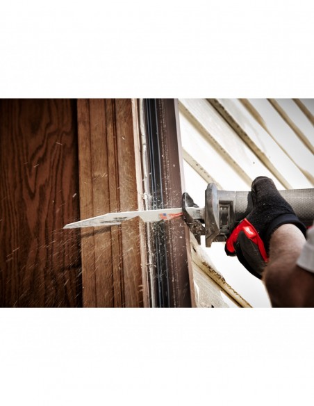 • Pochyły kształt brzeszczota sprawia, że ten brzeszczot jest idealny do cięcia wgłębnego. Najbardziej nadaje się do cięcia metalu i do prac wyburzeniowych (drewno z gwoździami).