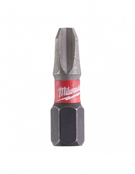 - Geometria Shock Zone zmniejsza naprężenie na końcówce, dzięki czemu jest bardziej odporna na złamanie. Połączenie konstrukcji Shock Zone oraz specjalnej obróbki cieplnej pochłania udar i pozwala aby bit zginał się podobnie jak sprężyna.