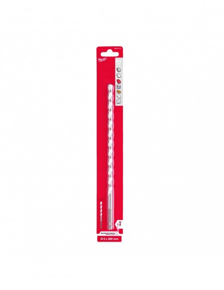 - Wiertła z końcówką z węglika wolframu (TCT) umożliwiają wiercenie w betonie, cegle, dachówkach, bloczkach z gazobetonu, cienkim metalu, aluminium, płytkach ceramicznych o niskiej i średniej twardości, we wszystkich rodzajach drewna i PCW.