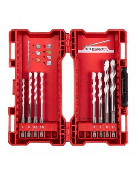 - Wiertła z końcówką z węglika wolframu (TCT) umożliwiają wiercenie w betonie, cegle, dachówkach, bloczkach z gazobetonu, cienkim metalu, aluminium, płytkach ceramicznych o niskiej i średniej twardości, we wszystkich rodzajach drewna i PCW.