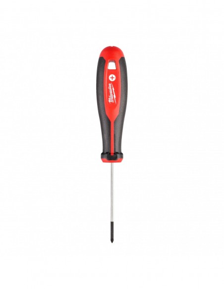 - Spłaszczony z 3 stron kołnierz na rękojeści zapobiega przetaczaniu się wkrętaka.