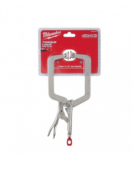 - Zaciski blokujące typu C TORQUE LOCK™. Szybki montaż i łatwe zwalnianie w przypadku zaciskania płaskich i okrągłych materiałów do spawania. Można przyłożyć dodatkową siłę do śruby TORQUE LOCK™ w celu lepszego i pewniejszego zacisku