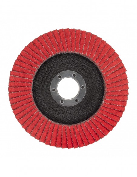 - Stożkowy, elastyczny talerz wsporczy do listków, który ułatwia dopasowanie się materiału ściernego tarczy do kształtu szwu spawalniczego lub innego trudno dostępnego miejsca.