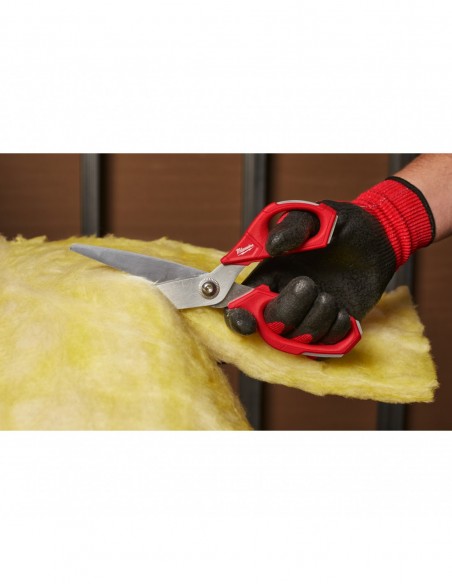 - Nożyczki kątowe z głowicą pochyloną pod kątem 60° umożliwiają utrzymywanie ręki nad przecinanym materiałem