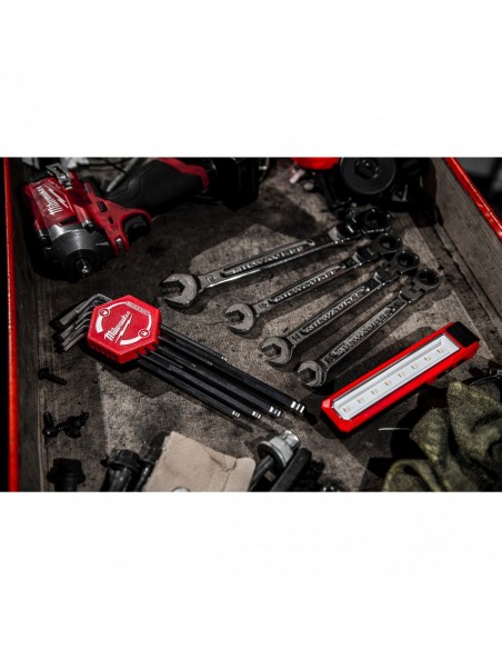- Otwór w obudowie umożliwia łatwe mocowanie do smyczy do narzędzi Milwaukee w celu bezpiecznego użytkowania na wysokościach