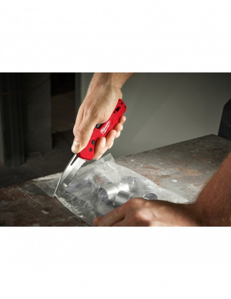 - Częśćiowo ząbkowane ostrze zapewnia wszechstronność pozwalając zarówno na przekłuwanie jak i rozdzieranie materiału.