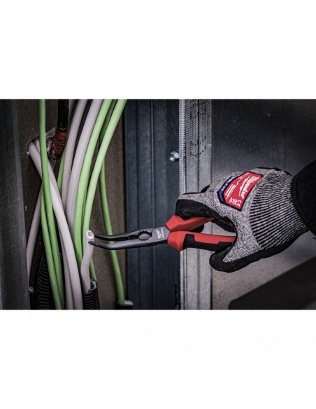 - Krawędzie tnące hartowane indukcyjnie do cięcia twardego, miękkiego i cienkiego przewodu.