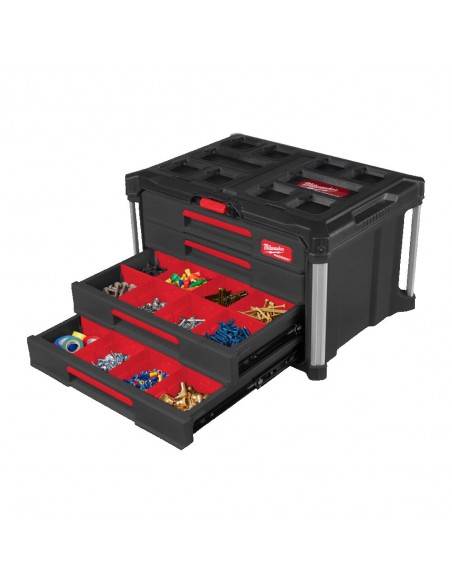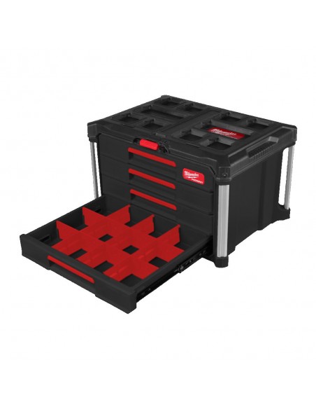 - Skrzynia PACKOUT™ z szufladami umożliwia łatwy dostęp do narzędzi nawet gdy znajduje się na samym dole ułożonych w wieżę skrzyń.