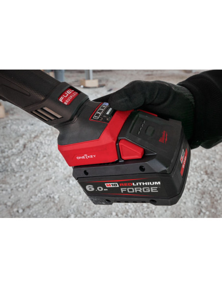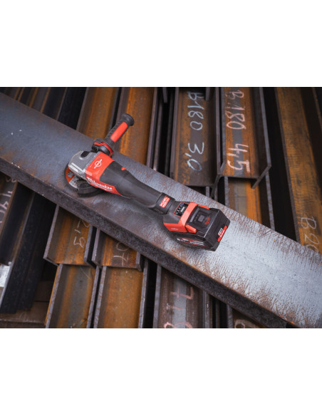 Wysokowydajna szlifierka kątowa 125 mm dostarczająca moc porównywalną do szlifierek sieciowych 1800 W z hamulcem, regulacją obrotów, systemem ONE KEY w zestawie z 2 akumulatorami 8Ah FORGE, szybką ładowarką M12-18FC pakowana w walizce