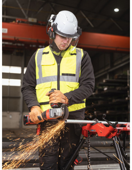 - Wyposażenie zestawu : osłona zabezpieczająca, zacisk osłony tnącej, uchwyt boczny, kołnierz, nakrętka kołnierzowa, klucz, 2 akum.8Ah FORGE, ładowarka M12-18FC, walizka HD-BOX