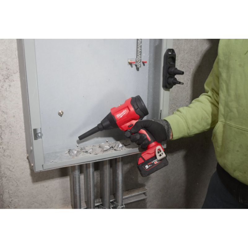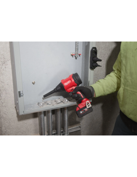- Potężny silnik bezszczotkowy generujący przepływ powietrza, aż do 1,1 m³/min przy prędkości 918 km/h, co umożliwia szybkie czyszczenie miejsca pracy