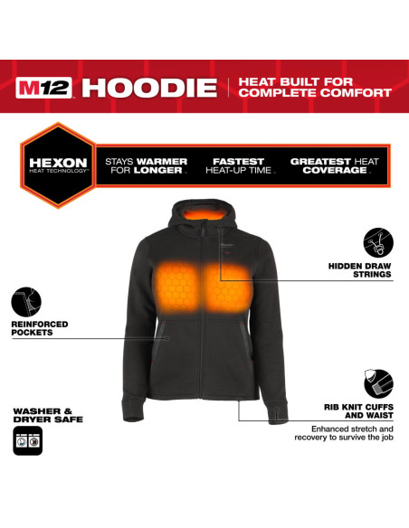 - Wytrzymała, ogrzewana bluza z kapturem wykonana z wytrzymałej bawełny (56%) z trwałymi, wzmocnionymi kieszeniami i poliestrową podszewką z polaru (44%), aby wytrzymać trudne warunki zewnętrzne.