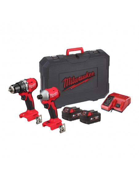 Kompaktowa zakrętarka bezszczotkowa M18BLIDRC + wiertarko-wkrętarka udarowa M18BLPDRC w zestawie z 2 akum.4Ah (M18B4) oraz ładowarką (M12-18C) pakowana w walizce