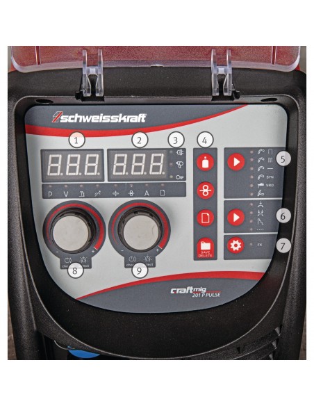 - Dokładne ustawianie parametrów spawania za pomocą cyfrowego wyświetlacza z pamięcią zadań