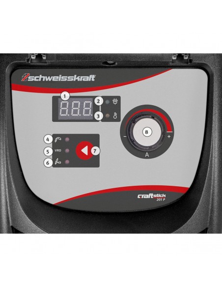 - Arc Force Control: Wewnętrzny monitoring prądu i napięcia spawania szybko i bezpiecznie eliminuje zwarcia, stabilizuje to łuk i pozwala na łatwą obróbkę elektrody