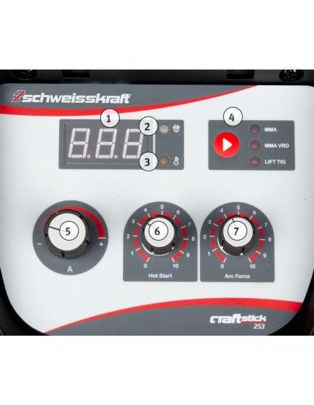 - Hot Start:Dzięki regulowanemu, krótkotrwałemu zwiększeniu prądu spawania łuk zapala się bezpiecznie i jest natychmiast stabilny