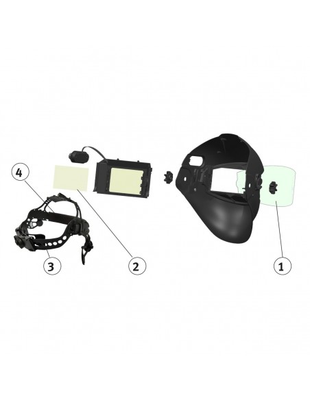 - System Flip-Up: kaseta jest składana w kasku, np. aby móc patrzeć bezpośrednio przez przezroczystą tarczę ochronną podczas szlifowania